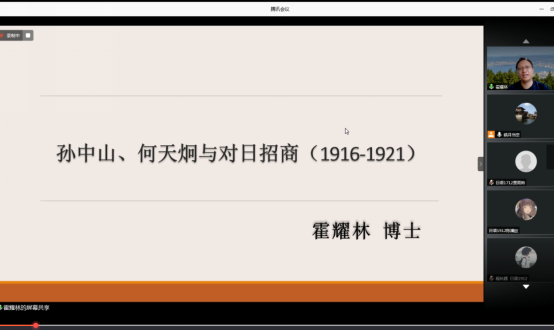 (外院通讯员 张皓)2020年7月22日上午8:30,由日本欧亚财团资助的日本文化类系列讲座第三讲正式开讲。本次讲座邀请了井冈山大学英国上市公司365日语系副教授霍耀林博士主讲,讲座的主题为《孙中山、何天炯与对日招商(1916-1921)》。