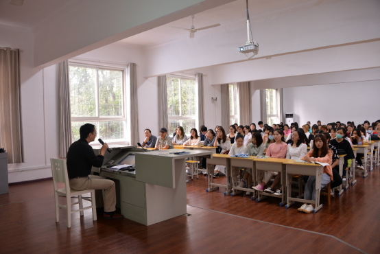 陈銮老师和学生们分享了英语专业的学科特色和就业前景,详细的介绍专业与师资队伍,帮助同学们更好进行学业规划,职业规划。吕泽元老师讲解了学籍和学分的相关规章制度,选修课学分,取得学位证、毕业证的基本条件,提高了同学们自主学习意识。呙小云老师讲解了奖、助学金,考风考纪、家庭经济困难认定等学生手册里相关规定,并强调外出请假,人身安全和疫情防控等相关事宜。最后陈丰杰书记通过“做人做事做学问”,教导学生要常怀感恩之心,学会做人,尊师重教,合理规划生活。