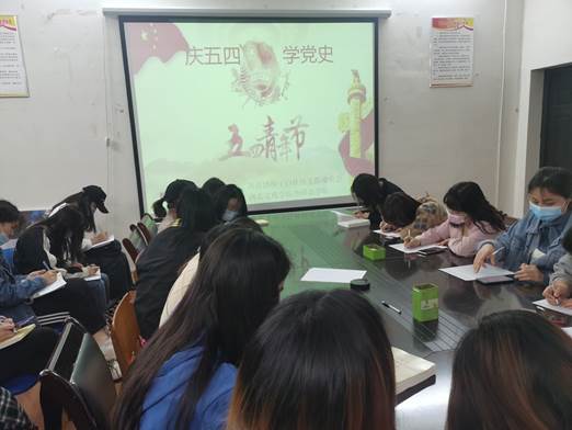 活动开始,大家观看学习强国网上视频,了解中国共产党发展历史和五四青年节的重大意义。阅读《中国共产党简史》、《习近平新时代中国特色社会主义思想学习问答》等党史教育书籍。学习结束,二十四名同学认真写下自己入党心路历程和学党史心得体会。