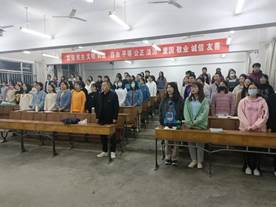 此次活动严格按照预备党员接收大会程序进行。会议伊始,主持人曹诗捷公布了此次竞选学生发展对象的发言名单,并号召参会人员认真聆听、记录。接着,学生发展对象依次汇报在发展时期的学习实践成果,以刘路宇、高沁雨等为代表的学生发展对象在发言中提到:自己成为一名预备党员以后,将不懈奋斗,坚持从小事做起,增强为学生、学院、学校、社会服务的能力,不负祖国、不负人民,为共产主义事业奋斗终生。随后,学生党员根据学生发展对象的发言投票表决预备党员,最终一致投票通过了27名学生发展对象成为预备党员。最后,由呙小云为新预备党员佩戴党徽,带领全体党员进行入党宣誓,他指出希望每位党员能将入党誓词铭记于心,时刻以优秀党员的标准严格要求自己,使自己成为一名合格的共产党员。