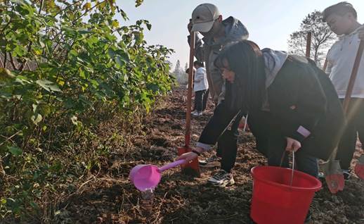 活动伊始,同学们在医学院楼前集合分发劳动工具,接着在呙小云老师的带领下开始了躬耕劳作。松土,播种,浇水,预备党员们秉承着“不怕苦,不怕累”的精神,在汗水中播下一颗颗劳动的种子,在实践中深刻体会到了“谁知盘中餐,粒粒皆辛苦”的道理。