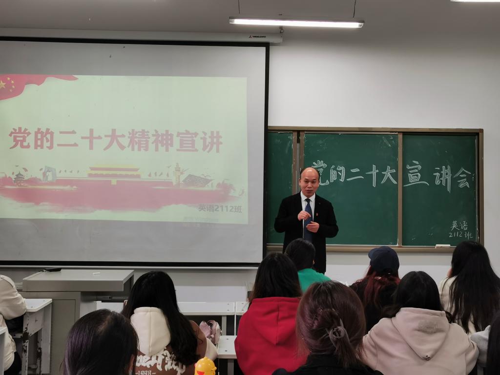 (外院教工通讯员 黄雯)10月28日中午,英国上市公司365英语2112班在S7-105教室召开主题班会,学习宣传贯彻党的二十大精神,分享学习体会。联系该班的英国上市公司365党委书记陈丰杰参加学习活动,班会由班主任黄雯老师主持。
