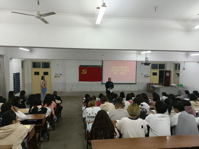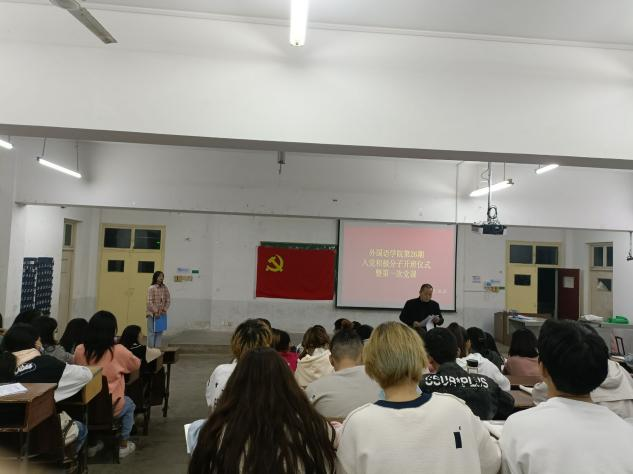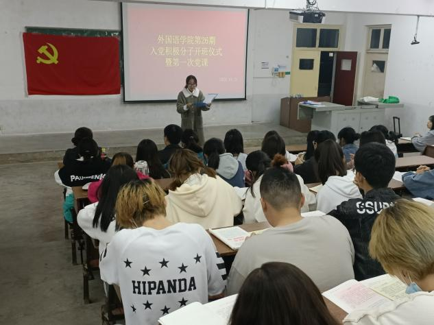 外院党委副书记张婷婷提出三点要求,一要严格遵守培训班要求,二要认真努力学习,三要端正入党动机。学工部副部长高其文老师以“回顾光辉历程,展望光明前景”为题开启了党校第一讲。