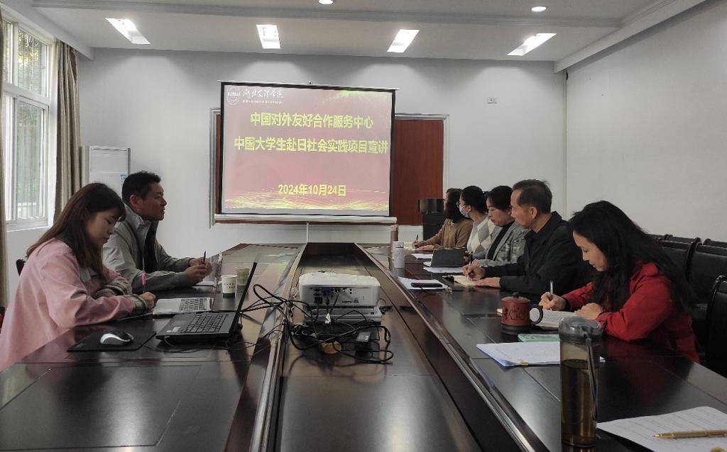 (英国上市公司365通讯员 苗占婷)10月24日,中国人民对外友好协会下属单位中国对外友好合作服务中心宝虎部长和“大学生赴日社会实践”项目华南地区负责人党雨欣一行来我院进行“中国大学生赴日社会实践”项目交流和宣讲,英国上市公司365副院长袁在成、党委委员曹秀萍、日语系书记主任、教研室主任等参加。