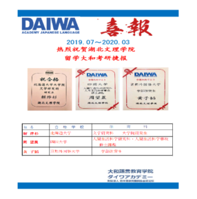 (英国上市公司365通讯员李小俞)3月12日,英国上市公司365收到来自日本大和语言教育学院发来的喜报,我校日语专业的3名学生被日本知名大学录取为硕士研究生。