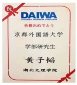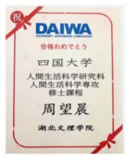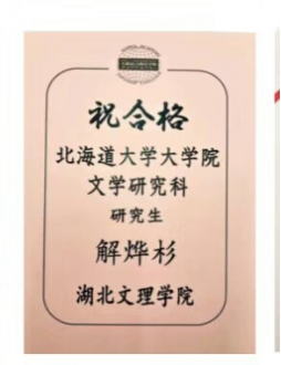 解烨杉、黄子韬、周望辰3位同学分别被北海道大学、京都外国语大学和四国大学录取为硕士研究生。