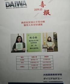 暑假期间,日语系老师积极与实习基地大和语言教育学院联系,指导学生做好赴日实习准备,有7名学生准备赴日实习,分别是:邱子叶、李灿、姜浩月、邹东韵、苏睿涵、王玉霞、刘梦瑶。同时,在暑假期间,收到大和语言教育学院发来的喜报,有多名学生通过努力考上了日本的大学院。