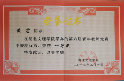 (英语系黄雯在湖北文理学院第六届青年教师竞赛中荣获一等奖)