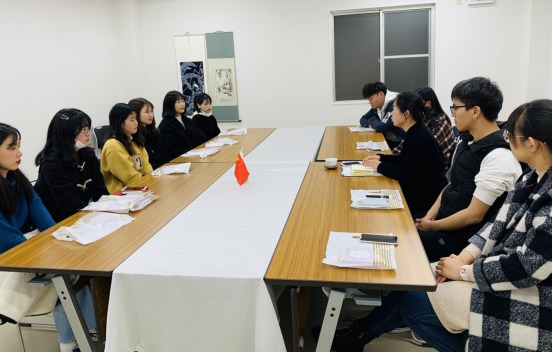 2、2019年12月日语系主任苗占婷老师利用在日本外派工作间隙,看望慰问我校驻日留学生,与留学生们座谈。