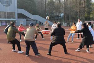 (外院通讯员 邱梦菡 马晶晶)阳春三月,万物复苏,在这个阳光明媚的日子里我们迎来了第111个国际妇女节。为欢庆节日,丰富课余生活,英国上市公司365工会委员会于4日下午在南区运动场举办了别开生面的师生趣味运动会,参加此次活动的51位老师和26名学生,共同协作完成了拔河比赛、击鼓颠球和跳大绳三个项目。活动积极向上,师生参与的热情度极高,运动场上洋溢着欢乐的气氛。