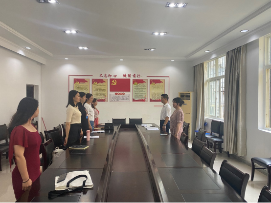 在第二阶段,按照“两学一做”支部主题党日活动议程,全体党员齐唱国歌,重温入党誓词,缴纳6月党费,然后由黄治勇诵读党章之第八章“党的纪律检察机关”之第46条“党的纪律检查机关主要任务”,以配合当前省委巡视组入驻我校开展的巡查活动。随后,分别由韩慧、杨芳庆、李鹏洲、张晶莹、华翔、龚艺等6位同志领学以下重要文件精神:1、习近平在全球健康峰会上的讲话精神;2、习近平总书记在中国科学院第二十次院士大会、中国工程院第十五次院士大会、中国科协第十次全国代表大会上的讲话精神;3、中共中央办公厅印发《关于在全社会开展党史、新中国史、改革开放史、社会主义发展史宣传教育的通知》精神;4、中央教育工作领导小组印发《关于深入学习宣传贯彻党的教育方针的通知》精神;5、省委书记应勇在全省市县乡领导班子换届工作会议上的讲话精神;6、襄阳市《关于深入开展“我为群众办实事”实践活动的实施方案》的有关要求。另外布置党员们线下学习习近平《论中国共产党历史》、《毛泽东、邓小平、江泽民、胡锦涛关于中国共产党历史论述摘编》、《习近平新时代中国特色社会主义思想学习问答》、《中国共产党简史》等党史学习教育相关资料。