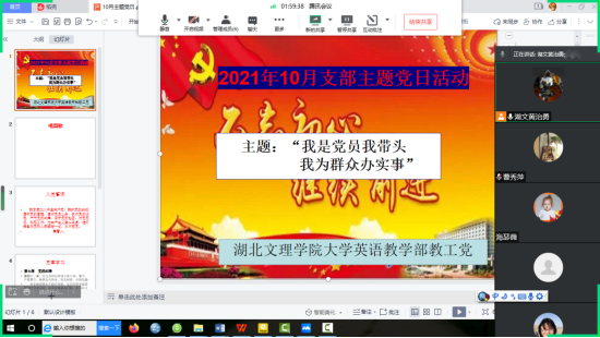 (英国上市公司365通讯员 黄治勇)2021年10月28日晚,大学英语教学部教工党支部通过腾讯会议形式在线开展10月支部主题党日活动,活动主题为:“我是党员我带头 我为群众办实事”。会议由支部副书记黄治勇主持。