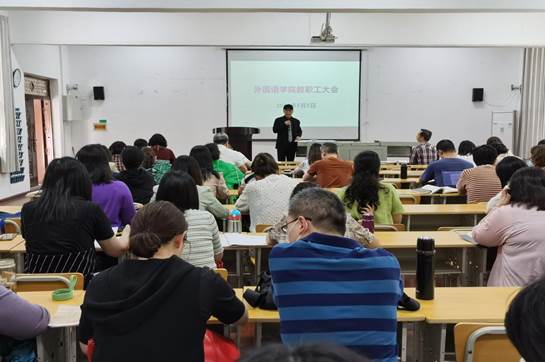 负责外院教学工作的曹秀萍主任安排了教学工作、论文推进工作、教研项目申报工作,和大创项目申报工作,以及教育思想大讨论等工作。