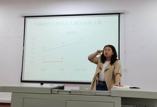 张婷婷安排学生及工会工作,她就2018级毕业生就业工作及考研情况进行了分析总结,以推动外院高质量就业。