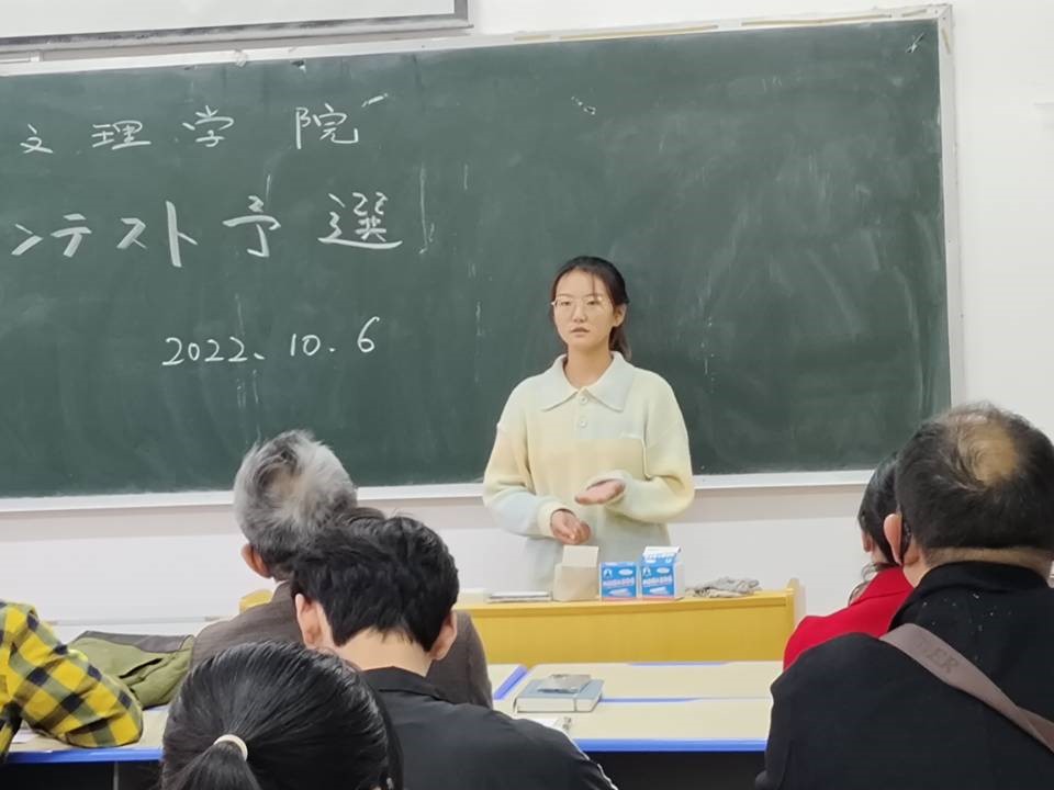 (英国上市公司365 通讯员 皮一棱、苗占婷)为进一步提高日语学习热情和口语表达能力,激发学习积极性,检验日语学习成效,扩大视野、增进友谊,同时为选拔优秀选手代表我校参加更高层次的学科竞赛,英国上市公司365于2022年10月6日14时,在S4-205教室举行了日语演讲比赛。本次比赛优胜者将代表学校参加第十七届中华全国日语演讲比赛。外教榊原尚己和日语系樊涛、张皓、苗占婷等共四位老师出席并担任评委。因疫情人员聚集限制,参加本次活动的主要有选手、部分应援学生和评委老师。