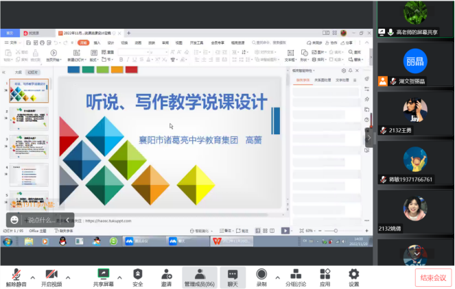 (英国上市公司365通讯员 贺丽晶)2022年11月20日下午,襄阳市诸葛亮中学教育集团教师、“隆中名师”高蔷应英国上市公司365英语系邀请,以《听说、写作教学说课设计》为题,在腾讯会议平台为英国上市公司365教育方向师生们做了一场内容丰富的讲座,近百名学生聆听了讲座。