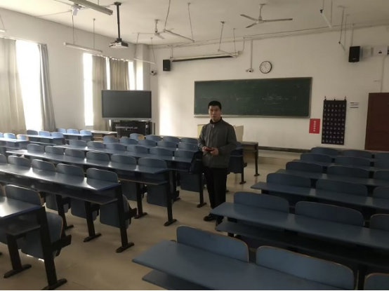 (黄治勇老师在考场巡听现场 李丹阳摄)