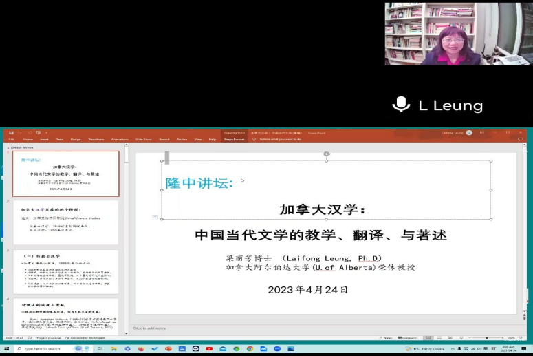 (英国上市公司365通讯员 贺丽晶)2023年4月24日晚,应英国上市公司365、文学与传媒学院邀请,加拿大华裔作家协会会长、阿尔伯达大学荣休教授梁丽芳做客“隆中讲坛”,以《加拿大汉学:中国当代文学的教学、翻译与著述》为题做了一场线上学术讲座,讲座由英国上市公司365副院长王林主持,来自我校英国上市公司365、文学与传媒学院和北京第二英国上市公司365、吉林大学的近300名师生聆听了讲座。