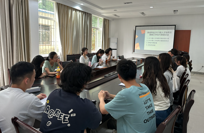 教师研讨会后,英语系邀请在校学生代表参加了2023版人才培养方案制定调研会,广泛征求他们对本专业2019版人才培养方案的意见和对新版方案制定的建议。学生表示2019版人才培养方案课程、学时、学分设置合理,理论教学和实践教学比较完备,特别是在《英语学科教学论》、《翻译理论与实践》等课程中收获比较多。部分同学建议通识课程的教学内容应多与专业课程结合,增加实训实践相关课程的课时和学分,增加职前教育和专业规划经验分享会等活动。