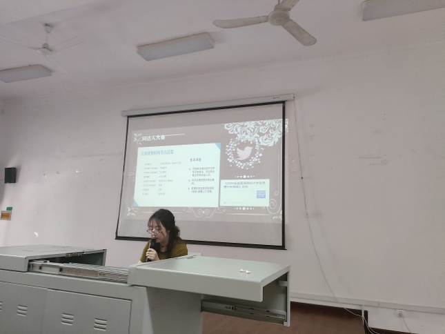 袁在成在发言中指出,我院历来重视外语学科竞赛,自“词达人”英语词汇大赛举办以来,我校学生踊跃参与,势头良好,成绩斐然。随着全国高校学生“词达人”杯英语词汇大赛和跨文化能力大赛影响力的不断提升,其获奖证书的重要性不言而喻。他要求各二级学院学习部长将本次宣讲活动的内容和精神宣传到位,号召同学们积极参与,为将来的考研、出国、就业储备硬性条件。他表示,英国上市公司365将为同学们参与各项外语学科竞赛提供备赛指导、培训等服务和保障,希望同学们踊跃参与,共创佳绩。
