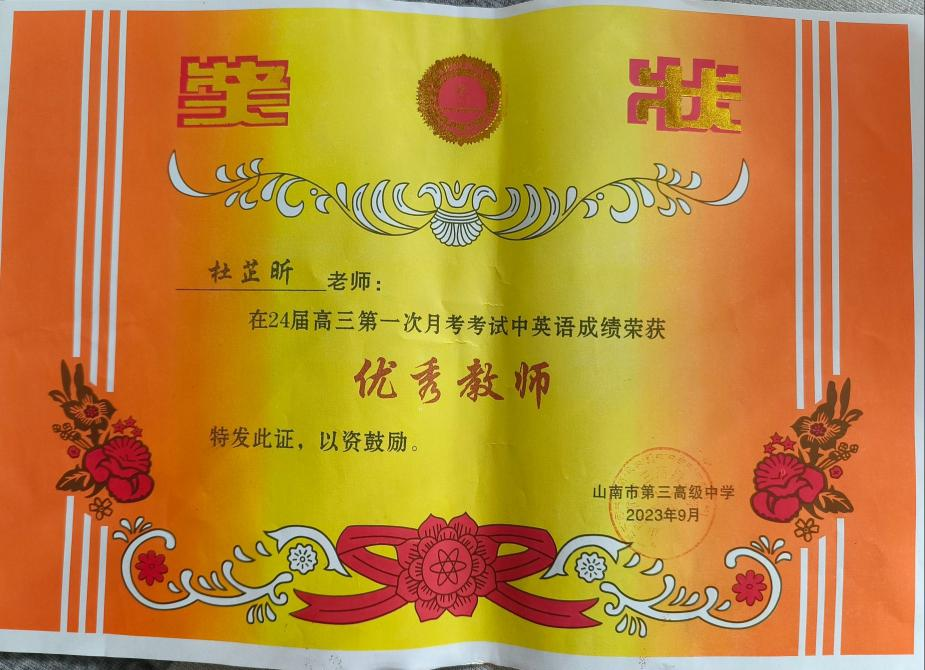 2022年12月,杜芷昕到西藏山南市第三高级中学报到,正式成为一名英语教师,开启了人生新的征程。初来乍到,她遇到的困难和挑战不小。由于学校教师资源缺乏,英语教学基础比较薄弱,学生的英语成绩普遍不理想。尤其是她接手的两个班级,英语成绩排名靠后。如何尽快适应新的环境,融入教学工作,改变落后局面,是她面临的新困难、新挑战。