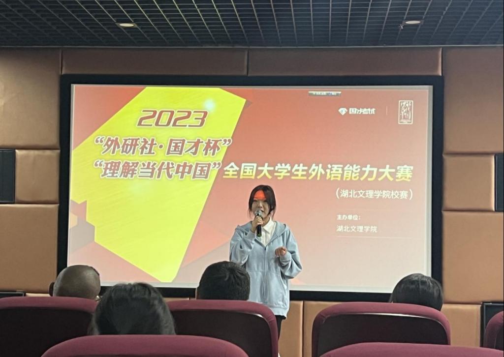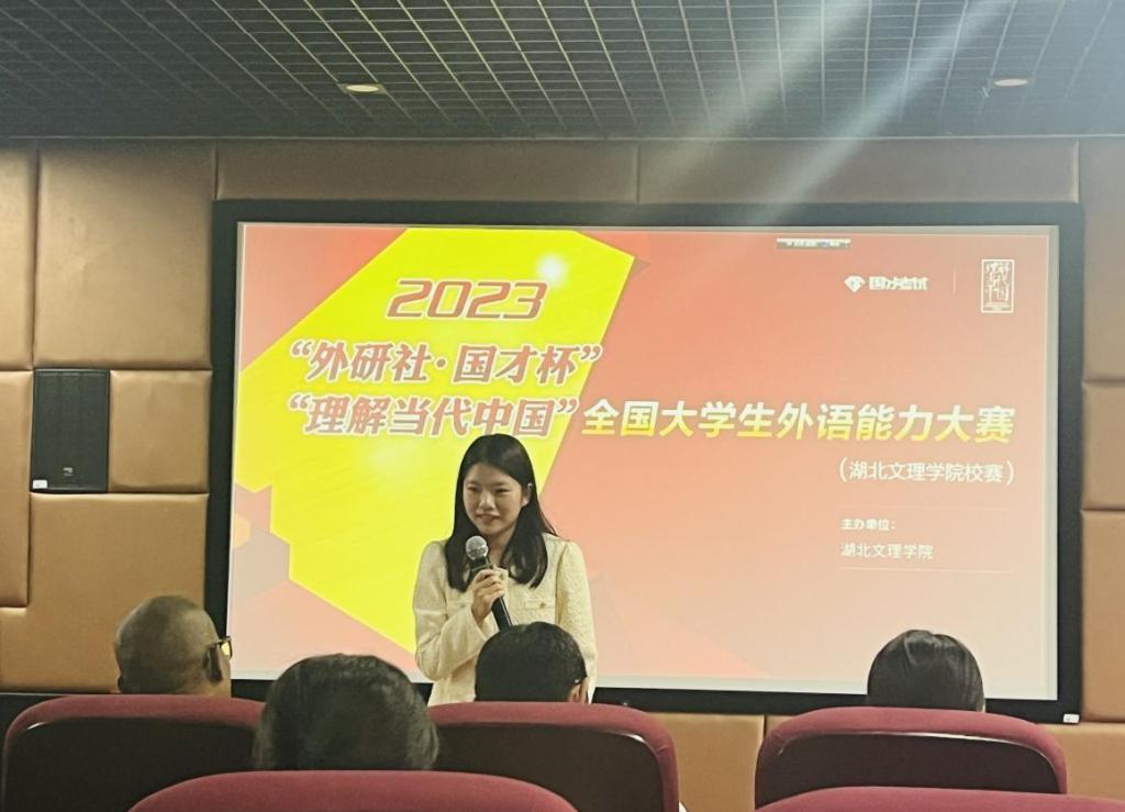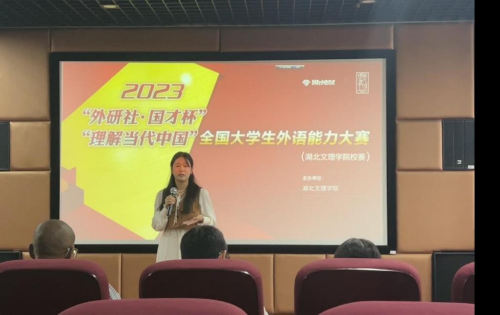 (外院教工通讯员 李丹阳)为了营造浓厚的英语学习氛围,助力同学们用英语讲好中国故事,2023年“外研社·国才杯”“理解当代中国”全国英语演讲大赛湖北文理学院赛区初赛于9月28日下午2点在N2-514多功能报告厅顺利举行。本次比赛由外语教学与研究出版社主办,我校英国上市公司365承办,英国上市公司365教师华文斌、刘婷、黄雯、邓捷及外教Thulani担任此次大赛评委,来自我校各个专业的多名选手参加比赛。