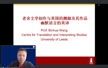 王斌华从作家老舍的写作与英国的渊源着手,梳理了老舍始于英国的文学创作及其回国后和在美期间的创作历程,详细介绍了其在各个阶段创作的文学作品,兼论及他协助海外译者翻译中国文学作品的活动。随后,以《离婚》及其英译本为案例,他分析了老舍作品擅用北京口语、文字简朴明快、句式简短、生活味浓、文字幽默俏皮等典型特点。在讲座第二阶段,王斌华通过老舍作品原作与英文译作案例比较,分析阐述了老舍作品中幽默语言的英译,指出文学翻译是一种二度创作,人工智能翻译尚难以传译文学作品的文学性。在互动环节,王斌华耐心解答了教师们关于文学作品的译介和跨文化传播等问题。本次讲座使师生们受益匪浅,有助于推动师生更好地学习、研究和传播中国文学与文化。