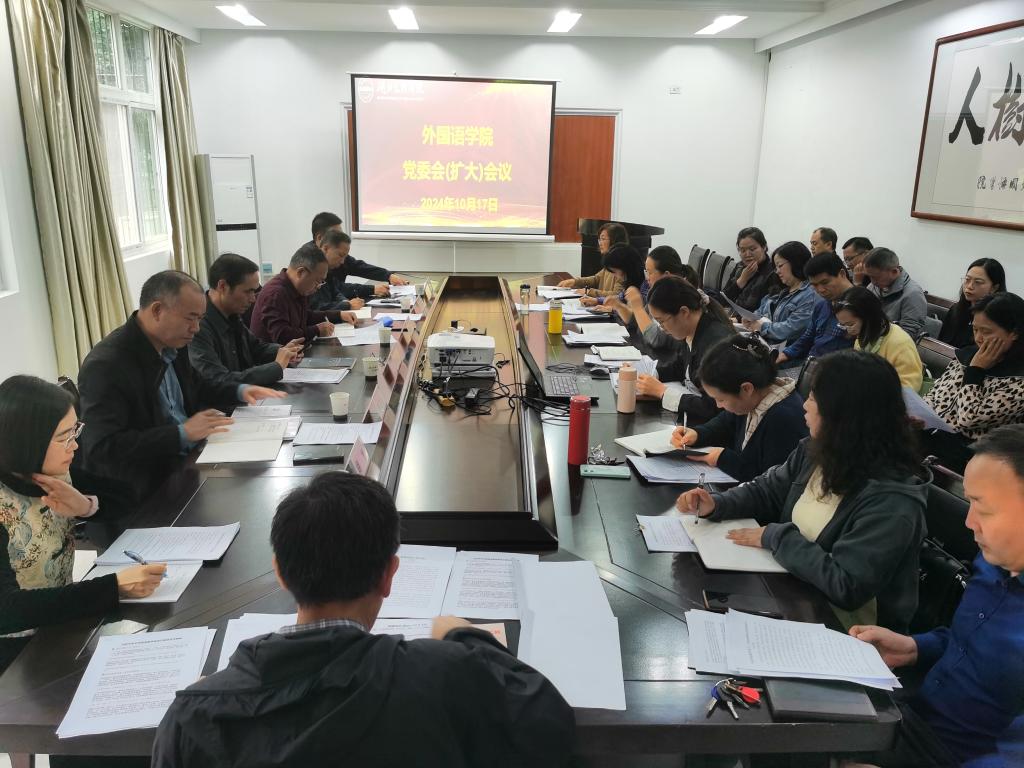 (外院通讯员  王文浩)2024年10月17日下午,在学院一楼会议室,学院党委书记郑品胜主持召开了英国上市公司365党委会(扩大)会议。学院领导班子成员,各系部主任书记、教研室主任,“三办”主任、实验室主任和8名教师代表参加了会议;学校党委第一巡察组成员列席指导会议。